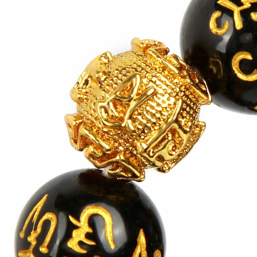 Feng Shui Black Obsidian Beads Bracelet Pixiu Attract Wealth & Good Luck Gift UK