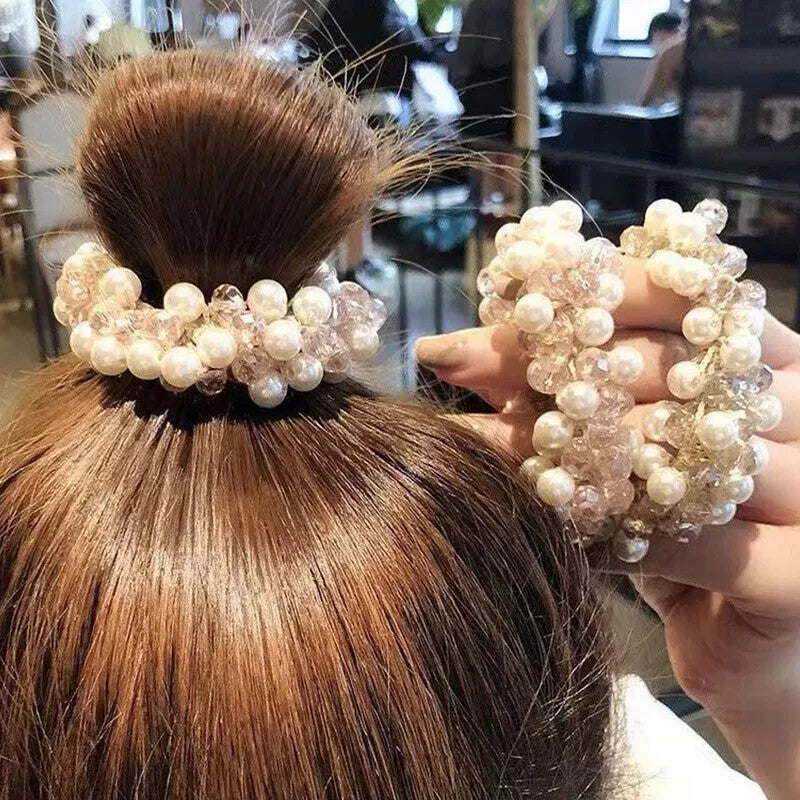 Crystal Pearl Elastic Rope Beaded Ponytail Holder Hair Band Ties Scrunchies Gift
