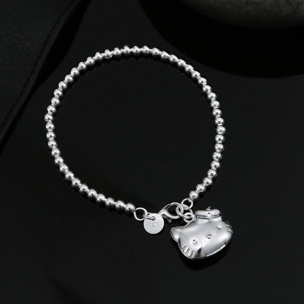 925 Sterling Silver Plated Lovely Kitty Cat Bracelet