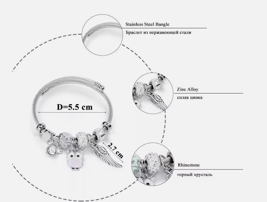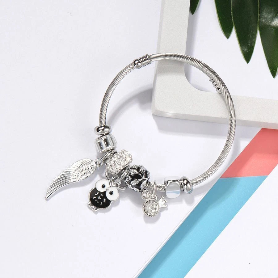 Stainless Steel Charm Owl Bracelet Cuff Bangle Women Wedding Jewellery Gift